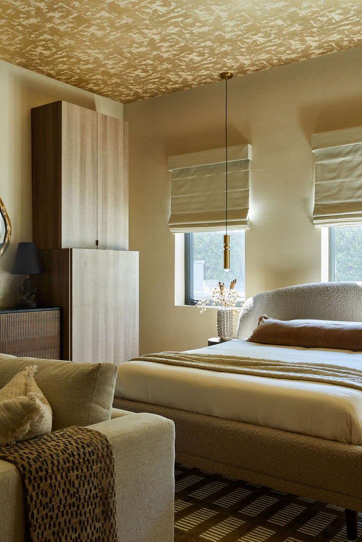 For this home, we focused on achieving a seamless balance of masculine and feminine aesthetics. The home’s strong architectural details—such as walnut slatted wood treatments, black marble surfaces, and steel-and-glass accents—established a bold foundation. To counterbalance these elements, we softened the palette with earthy neutrals, plush curved furniture, and layers of natural greenery. Over a period of three years we worked on every space in this home, from a full exterior refresh to multiple guest rooms, the primary, and a nursery for their growing family. We also undertook the conversion of the garage into a luxury bonus suite. Custom furnishings and bespoke elements factor throughout, making this a truly one-of-a-kind home.
